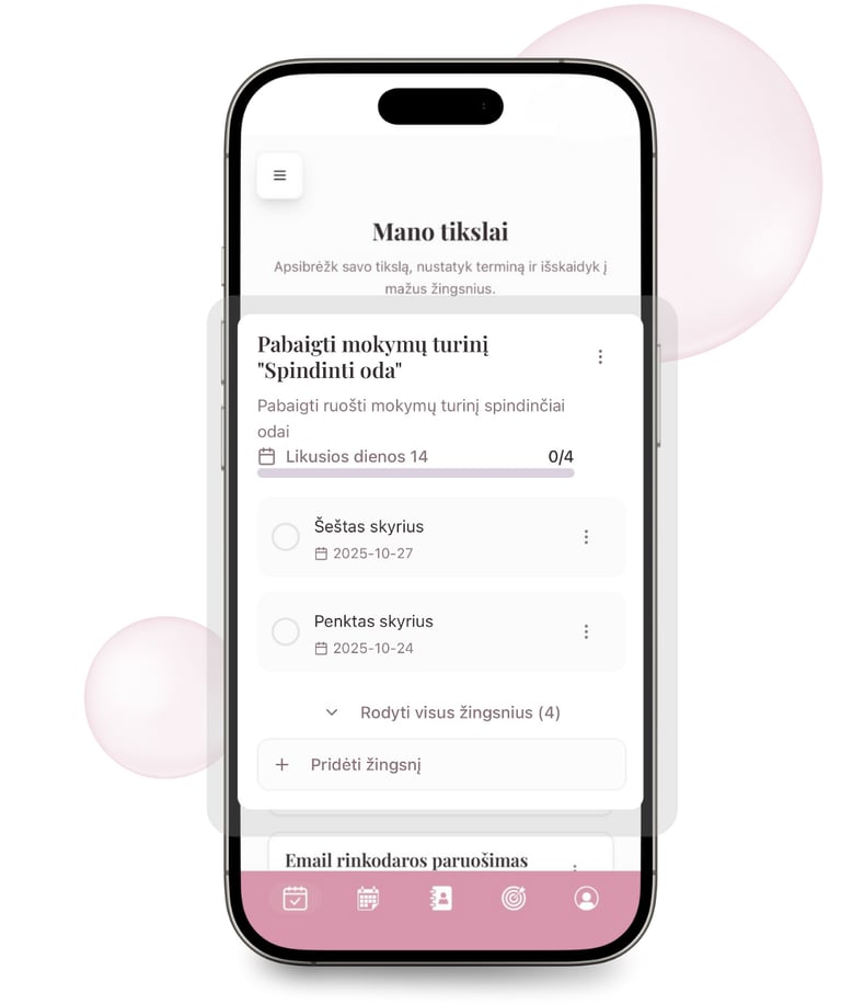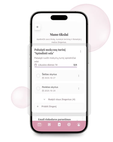 ✅ keliesi tikslus ir nori juos skaidyti pažingsniui bei sekti progresą